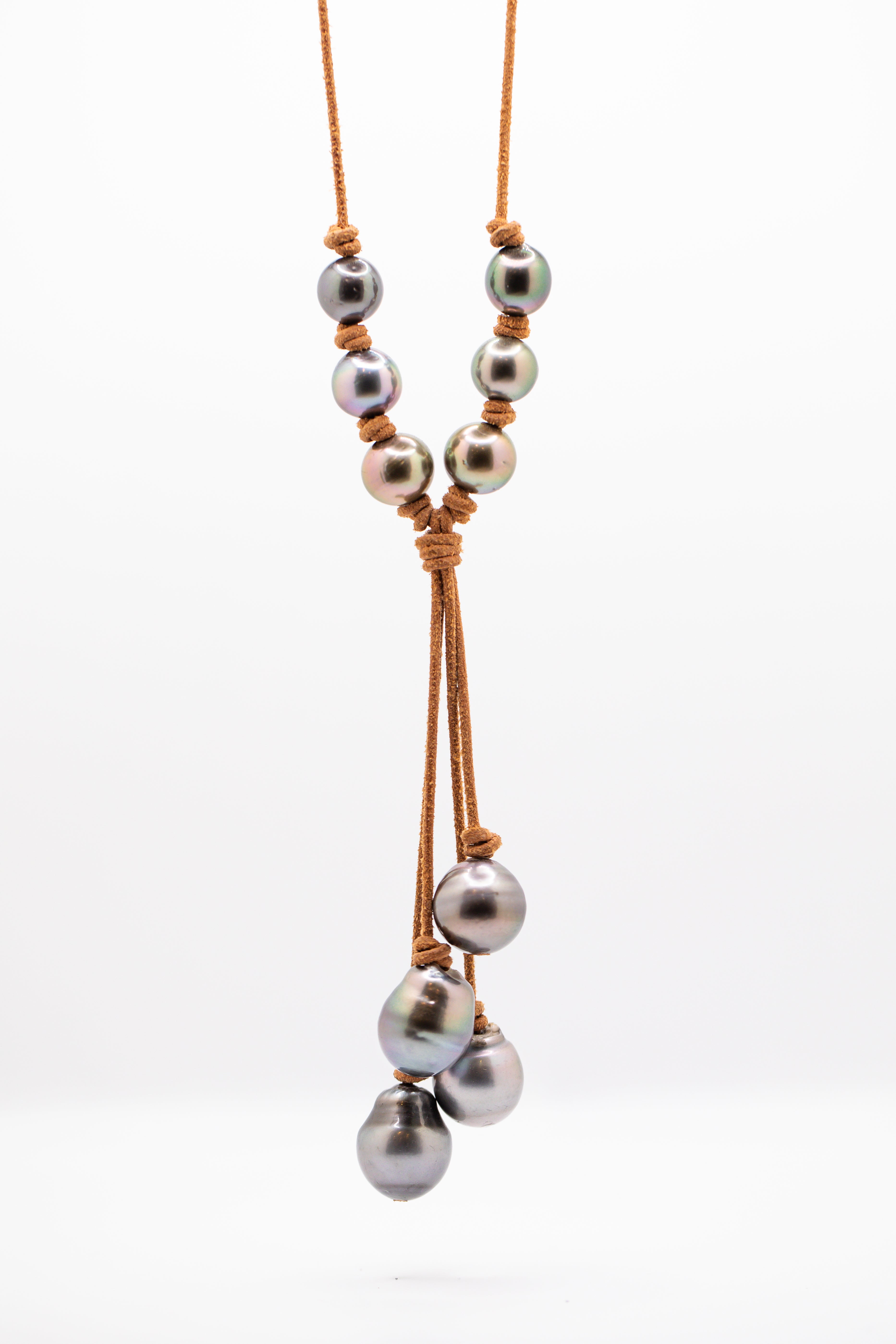 Black Tahitian Pearl leather necklace