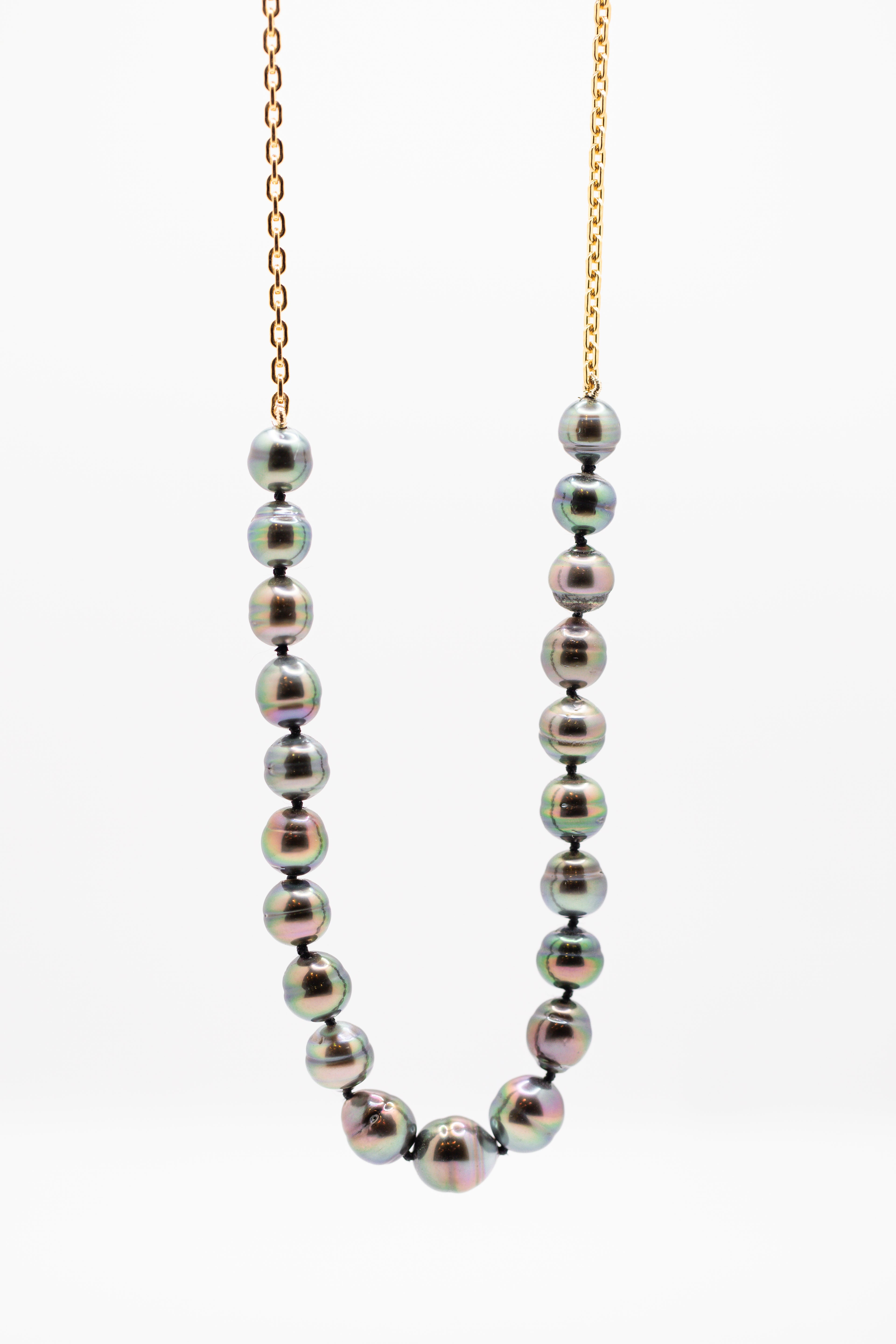 This necklace features polished silver toned pearls strung on a gold filled chain, creating a timeless and versatile accessory. Its minimalist design makes it perfect for both everyday wear and special occasions.